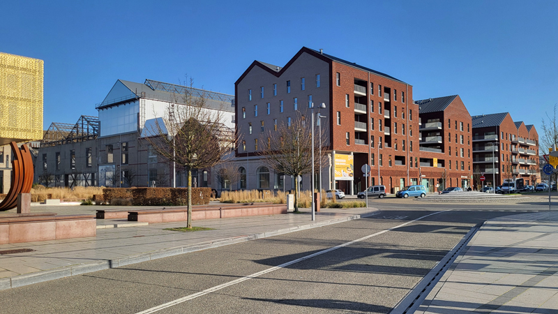 Cette dernière se verra animée des vitrines des commerces et des entrées des logements. Ceux-ci bénéficieront tous d’une agréable lumière naturelle, d’espaces extérieurs, de balcons, de terrasses ou de loggias, mais aussi de potagers et jardins partagés. Cet habitat de qualité, du studio à l’appartement 3 chambres, constituera un atout pour l’accueil de nouveaux habitants en centre-ville.